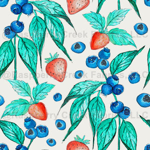 Watercolor Strawberry and Blueberry Botanical on Cloud Dancer