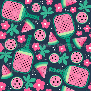 Watermelon Pickleball Paddles and Balls on Navy