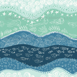 Waves with marine life such as fish, jellyfish, starfish, and much more.