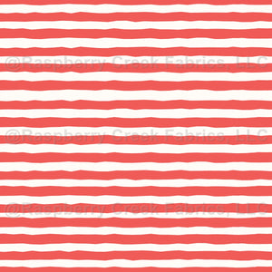 A hand drawn wavy coral pink and cream horizontal stripe