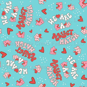 We Are a Perfect Match Valentine Puzzle Pieces on Blue