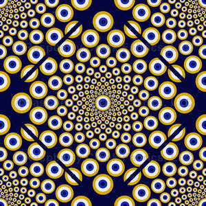 Enjoy geometric elegance in our surrealist eyes We Are Watching You dot mandala in a diamond tile pattern using colors from our Navy & Gold palette.