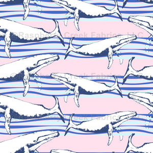 Whale Watch (Pink, Navy & Minty Blues) from the Salty Sea collection by Betty Louise Studio