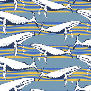 Whale Watch (Seafoam, Navy, Yellow) from the Salty Sea collection by Betty Louise Studio