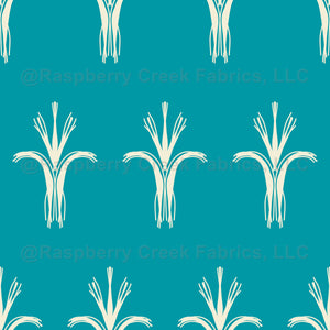 Abstract wheat motif in retro blue and eggshell.