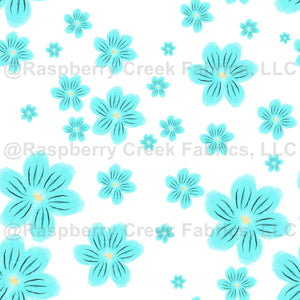 Whimsey Aqua, blue, floral, flowers, spring, summer, white, Lavender Willow Design