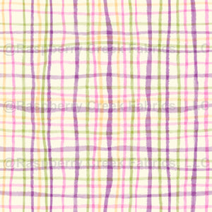 Whimsical watercolor blender in purple, pink, yellow and green checkered plaid
