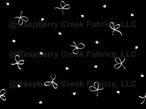 Whimsical White Bow and Pink Heart Ditsy on Black- Cute Minimal -Scattered