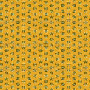 Whispy Vine floral dot, green on gold. Green flowers on gold background.