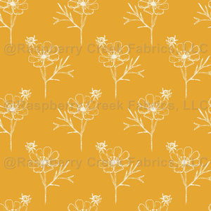 White Cosmo Flowers on Mustard