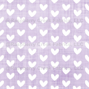 White Hearts on Pastel Purple Linen