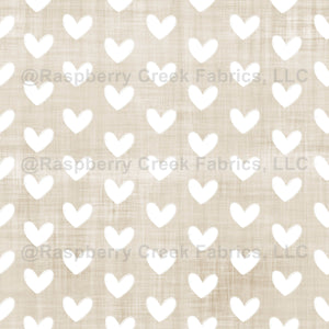 White Hearts on Tan Linen - large