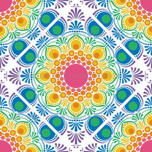 White Maximalist Rainbow Floral Fountain Diamond Tile
