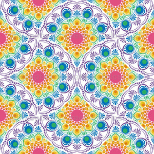 Enjoy vintage 1920s elegance in our abstract Floral Fountain dot mandala in an art deco fans pattern using colors from our Maximalist Rainbow palette.