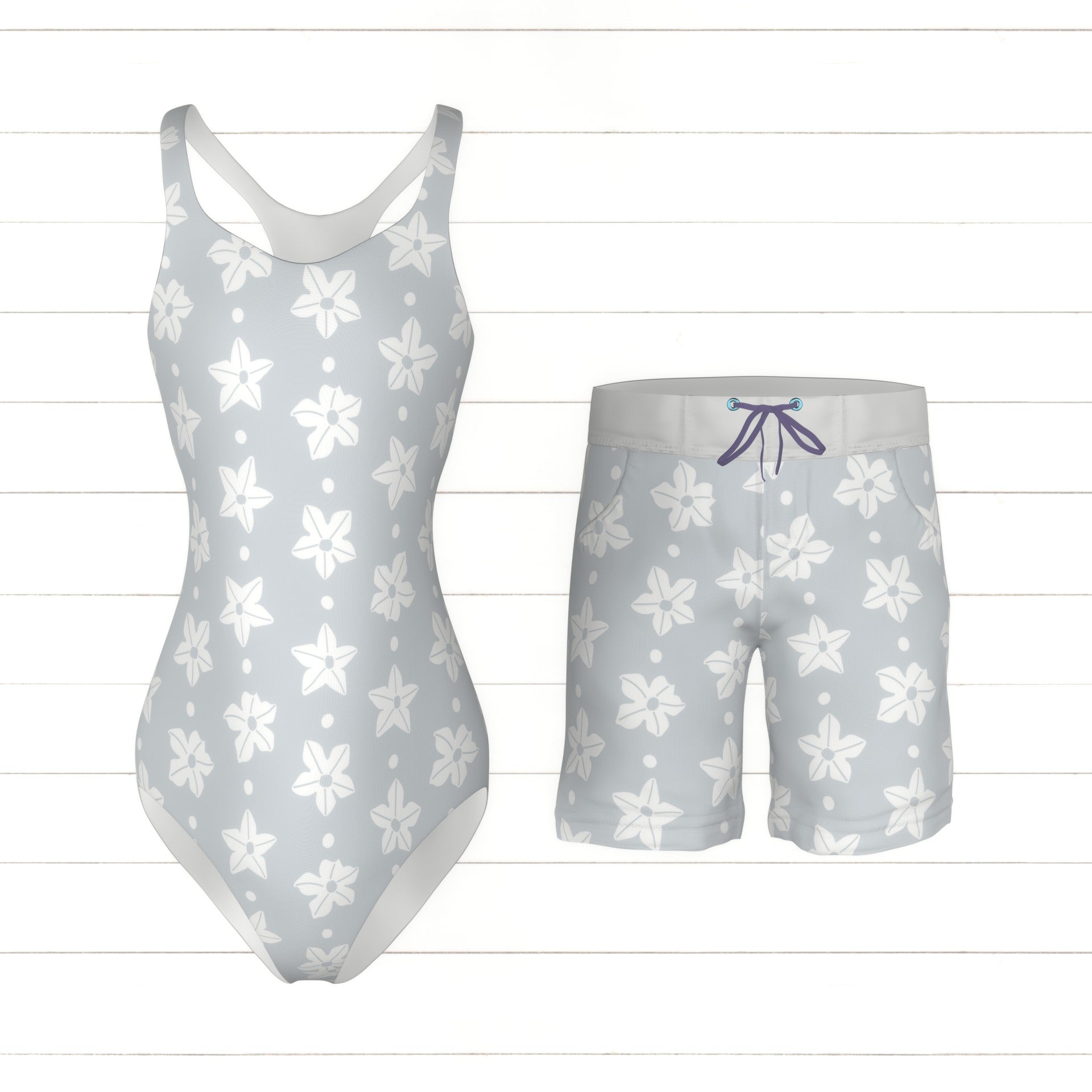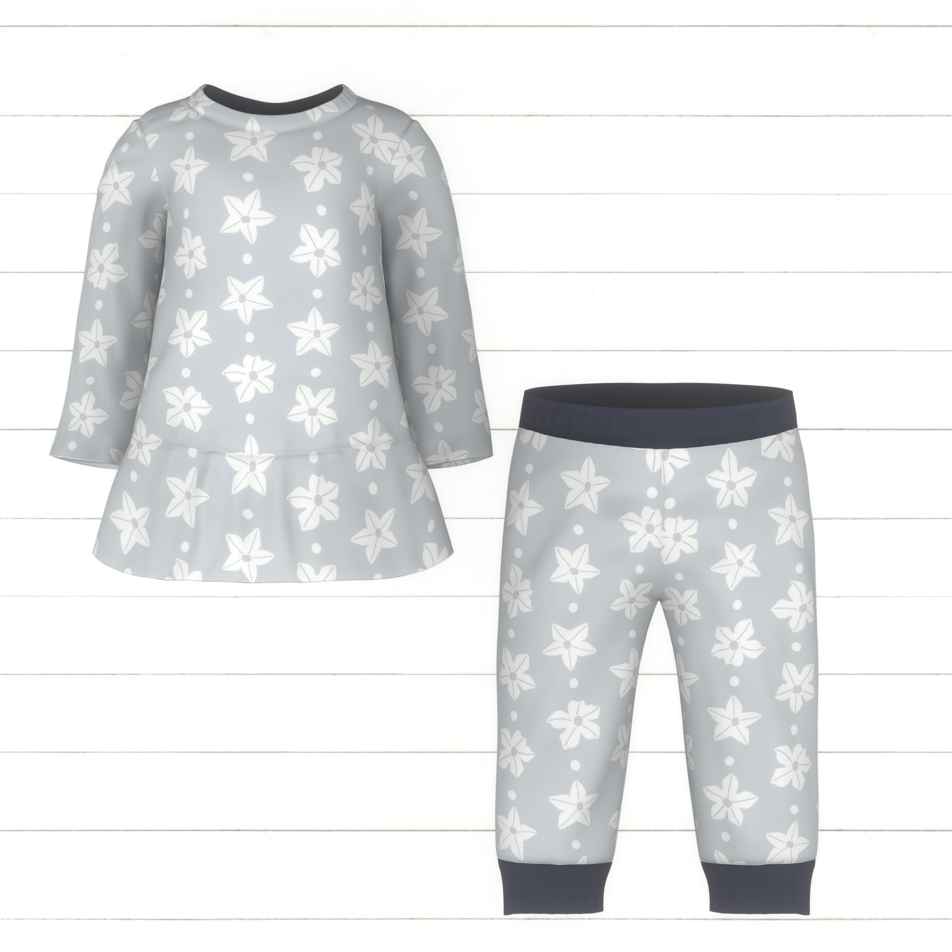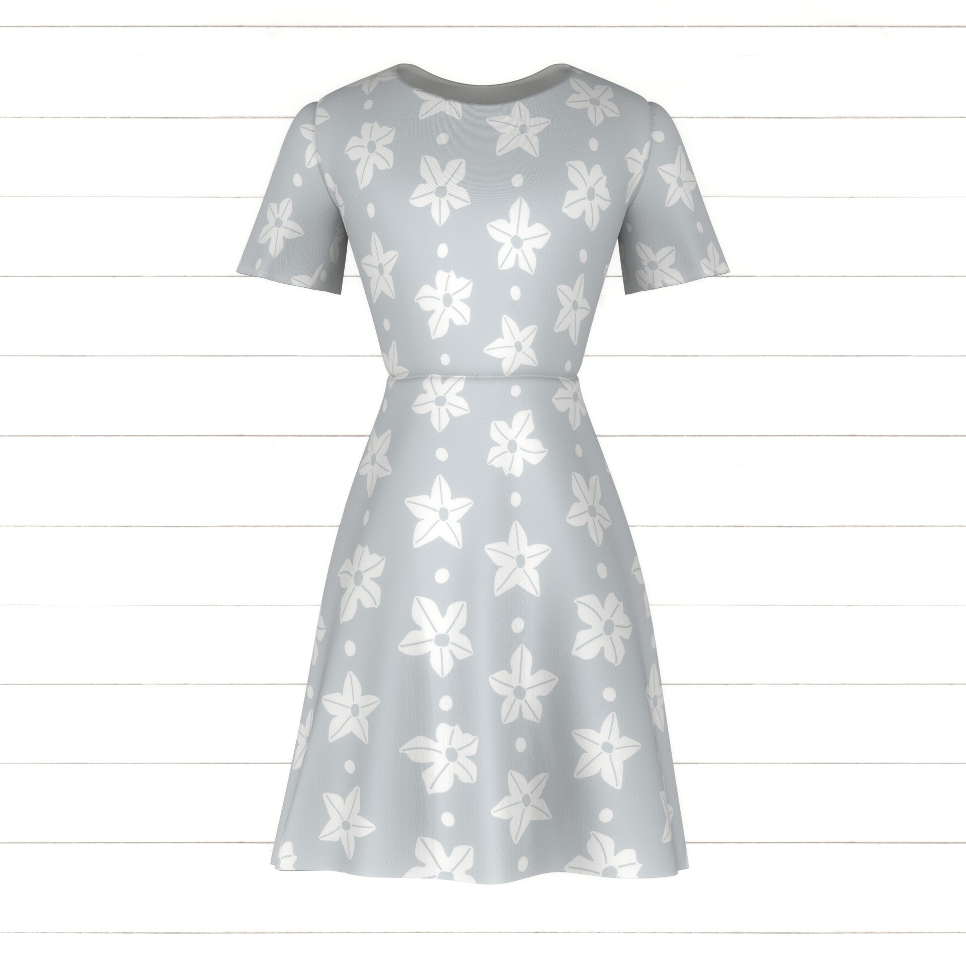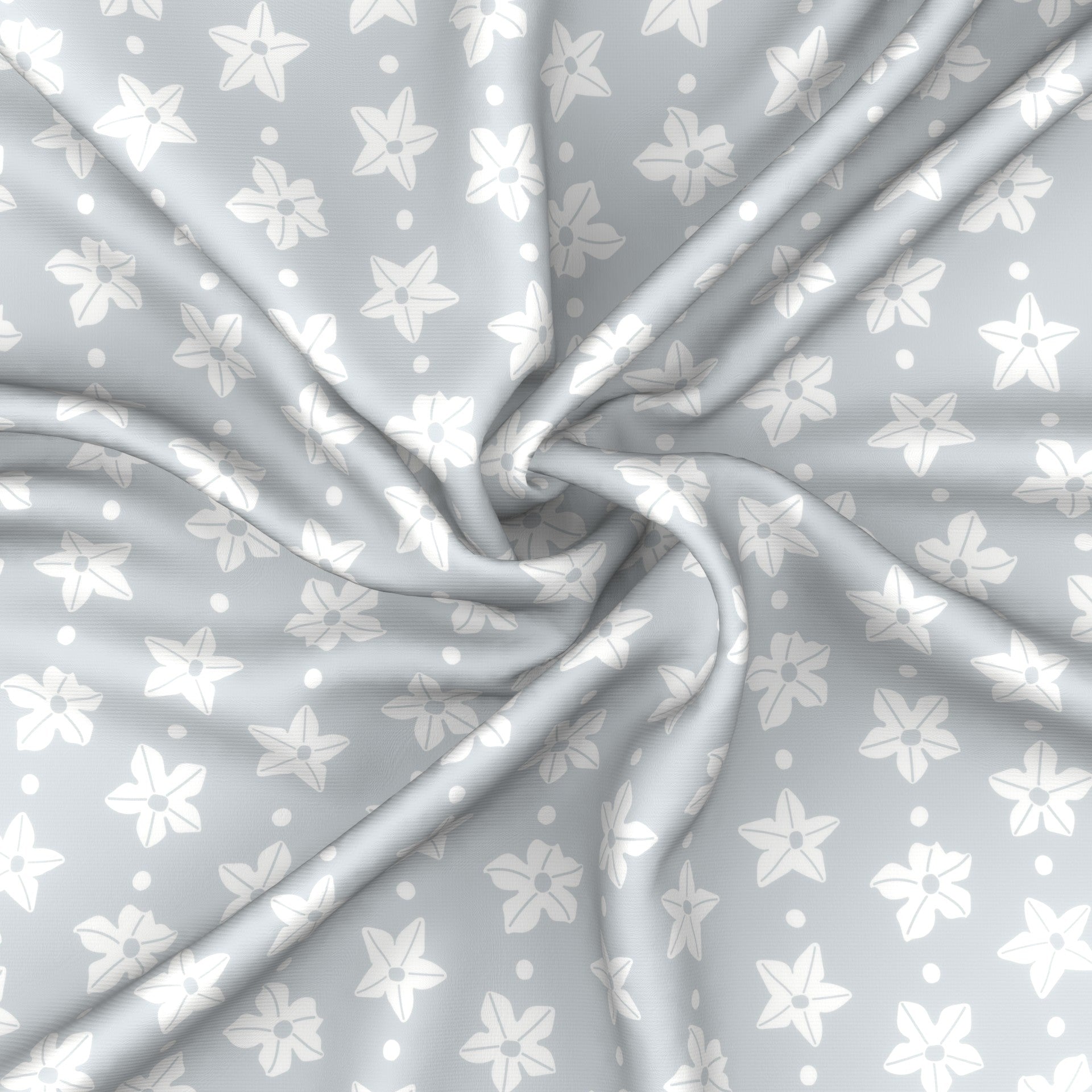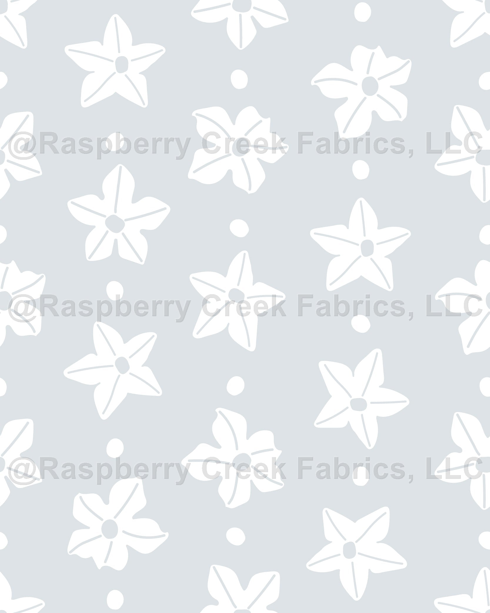 Cute two-tone floral pattern of white nicotiana flower chains with small flower center dots set on a solid soft sky baby blue background. This design matches the Piglet Butter Blue collection and is also available here in different colors, at a smaller scale, and as wallpaper.