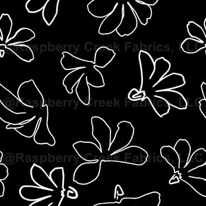 Part of the Naupaka Floral Monochrome collection. Midnight Black background. White flower outlines.