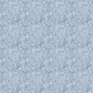Delicate pale butterflies dance across a rough floral background in soft blue. The relief texture adds depth and tactile effect for home decor or fashion.