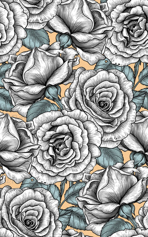 Hand drawn seamless pattern with peach roses