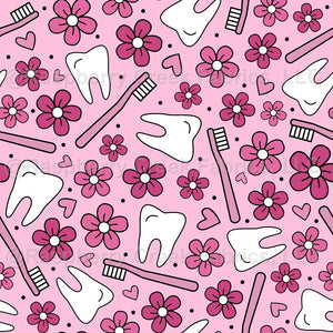 White Teeth and Toothbrushes Pink Floral