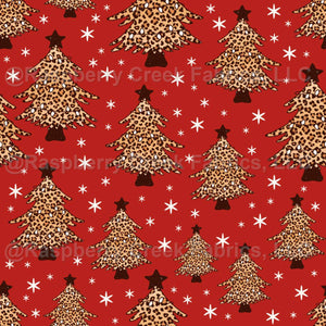 Wild About Christmas Leopard Pine Trees Rustic Red