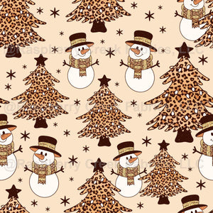 Wild About Christmas Leopard Snowmen and Trees Tan