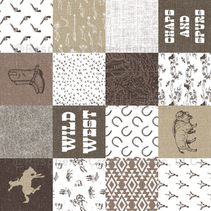 Wild West Wholecloth Cheater Quilt Brown Colorway, Gender Neutral Cowboy Western Wholecloth Patchwork Quilt - Rotated