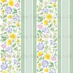 A vibrant wildflower pattern with bold blooms, accented by fresh green stripes—nature’s beauty woven together in a cheerful, lively design.