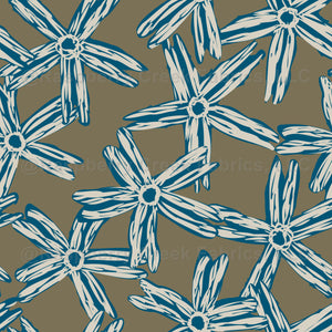 Hand drawn wildflowers. Earthy colors of blue and bronze brown.