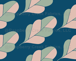Windstrewn Pink and Green Leaves on Blue Background Wallpaper