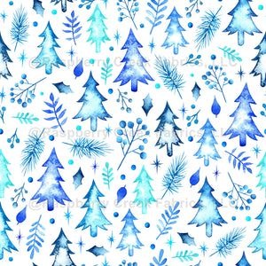 Blue Christmas Trees and Foliage in Watercolor (Winter Snow 2022 Collection)