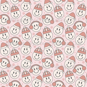 "Winter Happy Faces" is a cheerful and festive seamless pattern featuring illustrations of happy faces with winter-themed elements. This design captures the joy and merriment of the winter season, making it a delightful choice for projects that celebrate the holidays, snowy days, and the happiness that comes with wintertime.