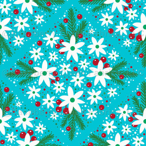 Winter Holiday Floral Dainty Damask on Bright Mystic Blue