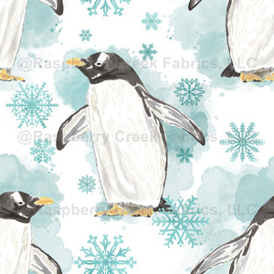 Winter, penguin, watercolor, snowflakes, animal, holiday, blue, white, black, zoo