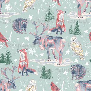 Winter Solstice / Making Spirits Bright / Gender Neutral Winter or Christmas Print with Reindeer, Fox, Raccoon, Owl, Pine Trees, Snowflakes, Stars Against a Winter Sky / 230301