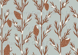 Winter Woodland Pinecones and Snow Covered Tree Branches - Muted Sage Brown // Evergreen Winter
