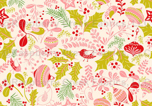 Folksy little sprigs of holly with Christmas baubles and berries. Classic holiday pattern perfect for lovely gifts.