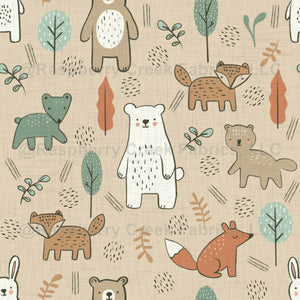 Woodland Animals for Nursery, Fabric, Stationary Foxes Bears Fox Forest