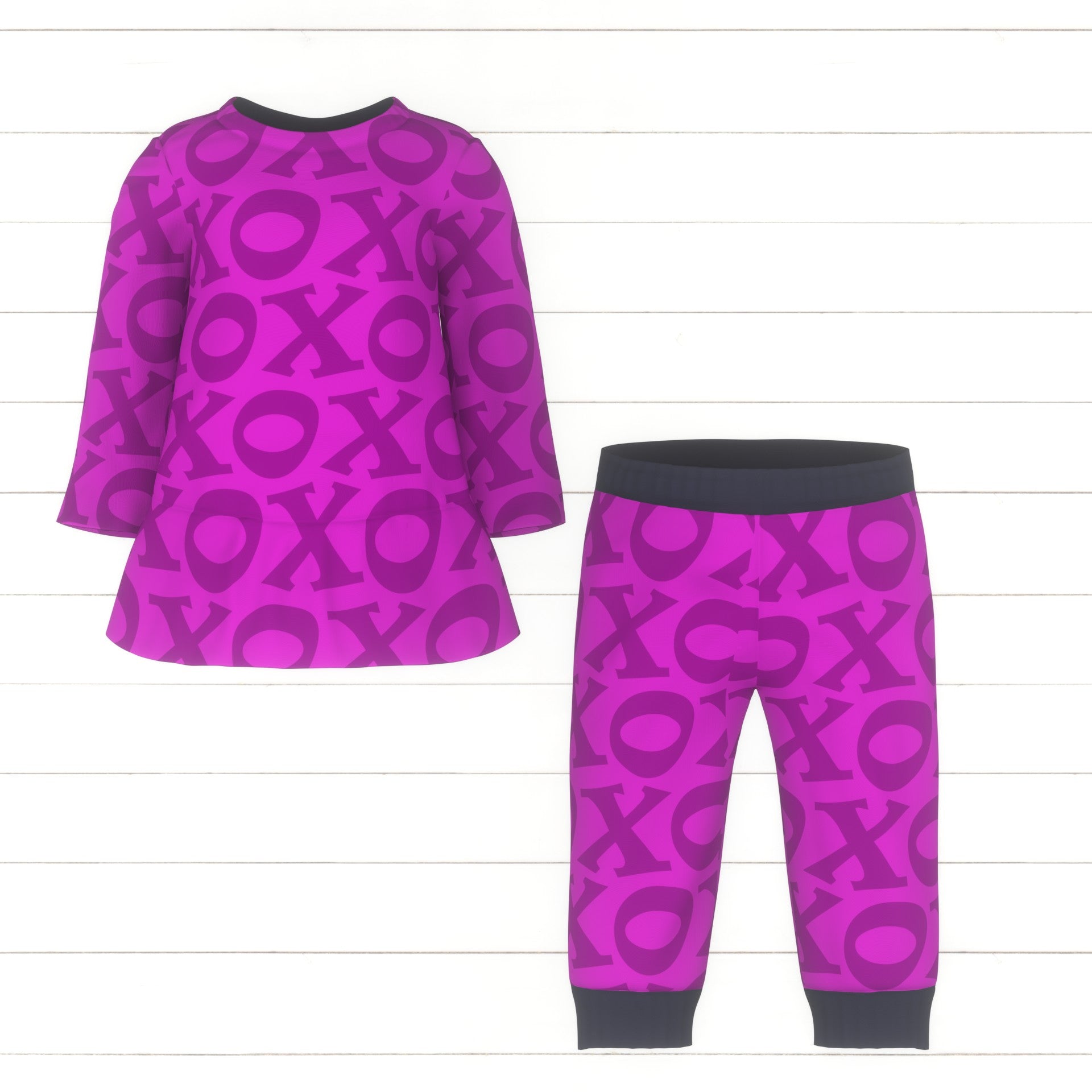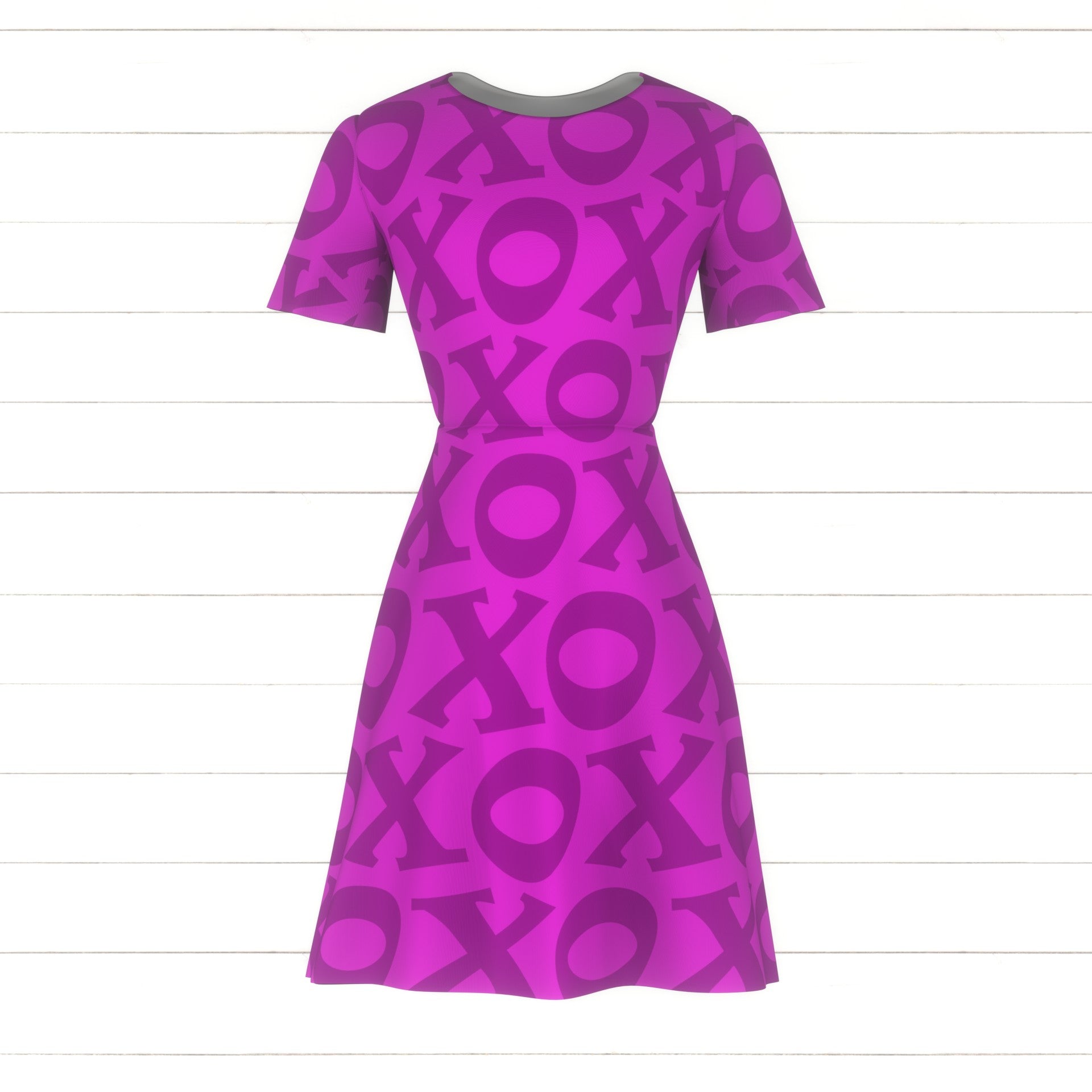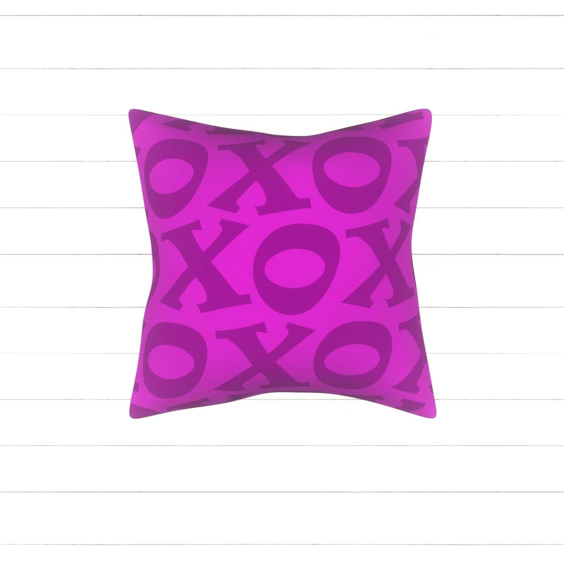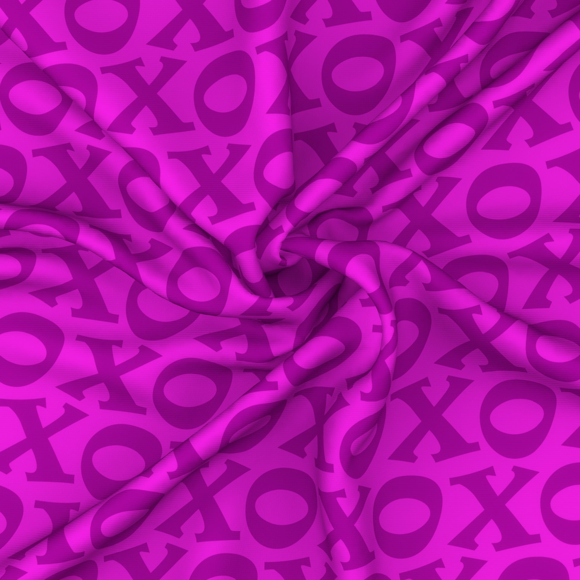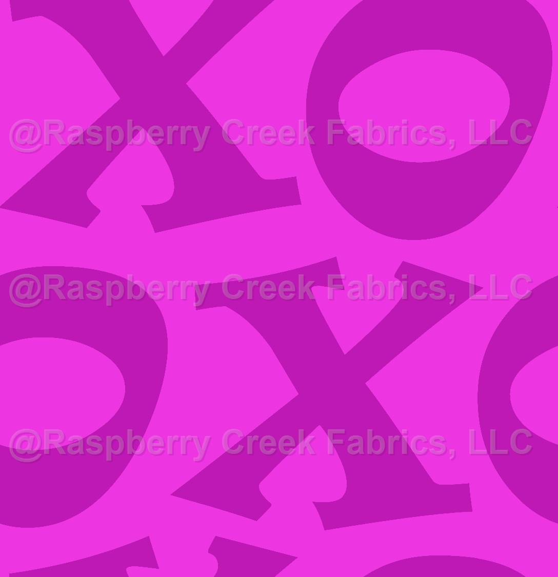 XO valentine in vivid magenta, fuschia-orchid purple. Symbol for hugs & kisses, love, friendship. Handy for valentine's day or neon-bright kids room. (c)CRL 2023, Font licensed.