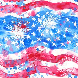 A whimsical watercolor flag with bursts of pastel fireworks, radiating joy and charm, in true Lilly-style—bright, breezy, and full of fun!