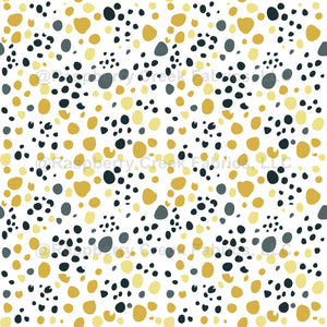 A modern and fun yellow and navy blue not so perfect organic shaped polka dot pattern