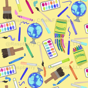 Yellow, art, paint brush, paints, hand drawn, crayons, globe, marker, Back to school, school, kids, teachers, girls, boys, bright