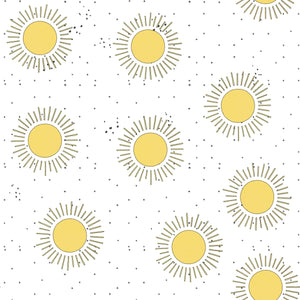 Yellow Charcoal and White Happy Sun Print Fabric, I Heart Sun by Bri Powell