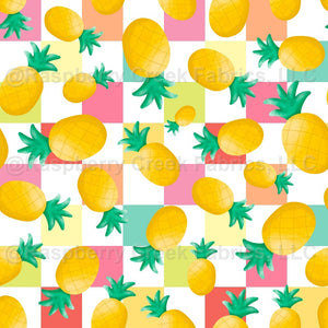 Yellow Gold Pineapples on Colorful Pastel Checkers