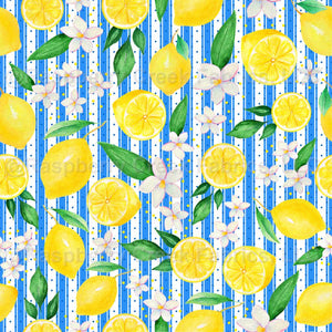 Yellow Lemons on Mediterranean Blue Stripes