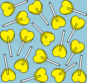 Yellow Lollipops, Heart Lollipops, Lollipop Pattern, Blue