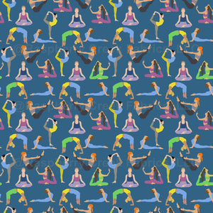 Yoga Asanas Yoga Studio Pattern on Light Pink - Blue