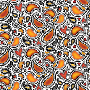 Zen doodle black and white ink drawing with sunset orange on a white background.